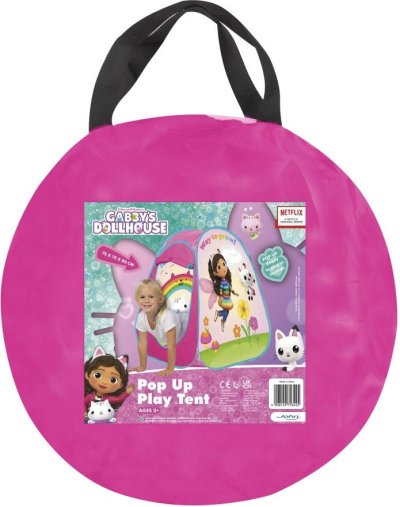 Dětský rychlorozkládací Pop Up stan s motivem seriálu Gábinin kouzelný domek. Děti milují skrýše, schovávačky, domečky a útulná místa, ve kterých si mohou nerušeně hrát a snít. Ideální pro hru v dětském pokoji, ale i na zahradu, kde stan poskytne stinné útočiště vhodné pro odpočinek. Podpořte fantazii svého dítěte a pomozte mu postavit jeho skrýš. Vyrobeno z lehkého omyvatelného materiálu, stan se snadno skládá i rozkládá, díky pružné konstrukci. Pro vnitřní i venkovní využití. Rozměry: 90 x 75 x 75 cm. Vhodné pro děti od 2 let.