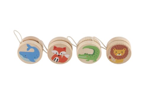 Jojo je hračka s dlhoročnou tradíciou. Pozná ju snáď každý. Povrázok si priviažete na prst a jemným pohybom ruky udržujete jojo v pohybe po povrázku hore a dole. Rôznofarebná joja sú s krásnymi veselými motívmi. Hračka je vyrobená z dreva. Rozmery výrobku 5,5 x 5,5 x 3 cm. Vhodné pre deti od 3 rokov.