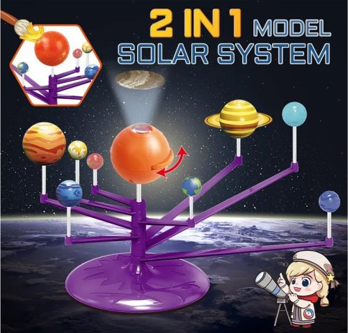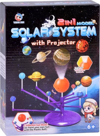 Skladacie planéty – Každá planéta sa skladá z dvoch častí, ktoré sa do seba jednoducho zasunú, takže nie je potrebné používať lepidlo. Toto jednoduché riešenie zaisťuje ľahké a rýchle zostavenie, vďaka čomu je model slnečnej sústavy pripravený na maľovanie behom chvíľky. Farby a štetec v balení – Po zostavení planét si ich deti môžu samy namaľovať pomocou farieb a štetca, ktoré sú súčasťou sady. Kreatívna časť hry zahŕňa reprodukovanie vzhľadu planét, napríklad Jupitera s jeho pásmi, Marsu s jeho červenkastým odtieňom alebo Zem s modrou oceánov. Skvelý spôsob, ako sa učiť prostredníctvom umenia. Oranžové Slnko s batériami – Ústredným prvkom sady je oranžová loptička symbolizujúca Slnko. Má zabudované batérie a projektor. Po posunutí posuvníka Slnka premieta obrazy planét na strop, čo vytvára úžasný vizuálny efekt a obohacuje zážitok z hry. Vzdelávacia hodnota – Tento mini model slnečnej sústavy je skvelá vzdelávacia hračka, ktorá pomáha deťom pochopiť základy astronómie, napríklad usporiadanie planét v našej sústave a ich vlastnosti. Je to výborný nástroj na učenie o vesmíre praktickým a zábavným spôsobom. Rozvoj kreativity a manuálnych zručností – Okrem výučby astronómie deti rozvíjajú svoje manuálne zručnosti pri zostavovaní a maľovaní planét. Kreatívna časť hry stimuluje predstavivosť, zatiaľ čo zostavovanie planét učí precíznosti a koordináciu ruky a oka. Jednoduchá montáž a čistá zábava – Vďaka skladacím planétam, ktoré nevyžadujú lepidlo, si deti môžu ľahko vytvoriť vlastnú slnečnú sústavu bez rizika, že sa zmôžu lepidlom alebo inými materiálmi.