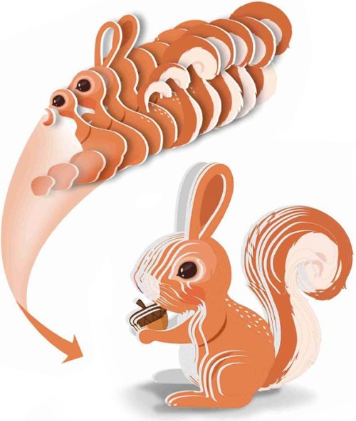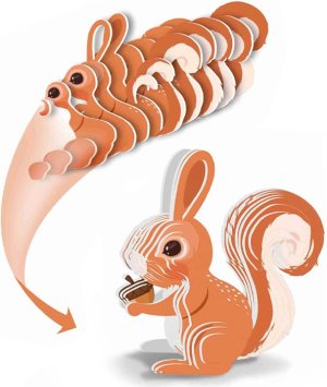 Kreatívna skladačka, ktorá deťom umožní vytvoriť pôsobivý 3D model rozkošnej veveričky.