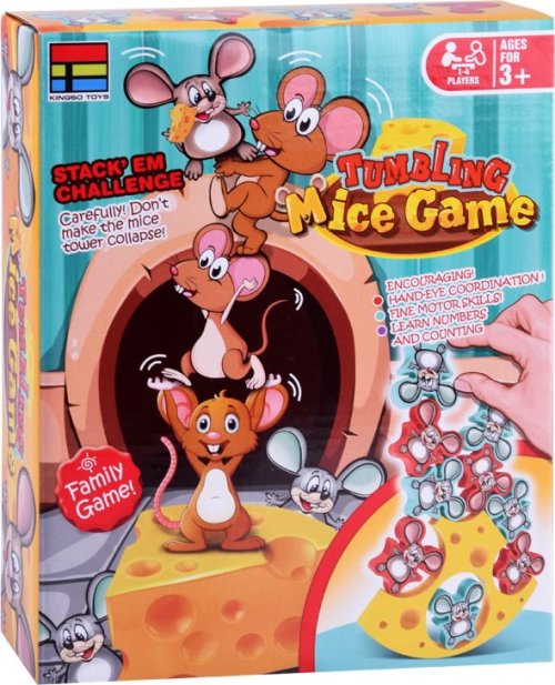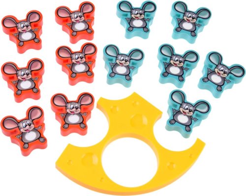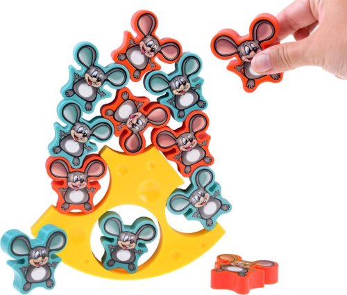 Balenie obsahuje: balančný syr, 12 figúrok myšou v dvoch farbách, samolepky. Rozmery: Syr cca. 14,5 cm x 14 cm x 1,5 cm Myš cca. 5,5 cm x 5,7 cm x 1,5 cm