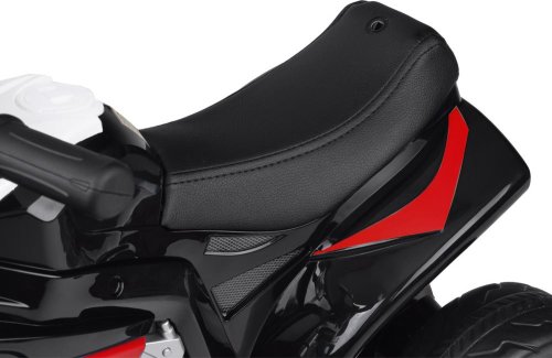 Kolesá motorky sú vyrobené z plastu, čo zaisťuje pohodlnú jazdu. Motorka sa rozbehne po zošliapnutí plynového pedála na pravej stúpačke. Ako sa na závodnú motorku pristane, na palubnej doske nájdete hodiny, tachometer a otáčkomer (vo forme samolepiek). Skvelou výhodou tohto vozidla je tiež primerane tichá prevádzka, ktorá je ideálna pre malé deti. Profesionálna športová motorka je snom každého fanúšika dvoch kôl! Poznámka: Motorka vyžaduje vlastnú montáž.
