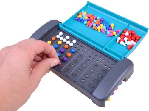 Rozmery: 16,5 x 8 cm x 2,5 cm Postup: Jeden z hráčov sa stane šifrujúcim hráčom av tajnosti pred protihráčom si vyberie štyri farebné štipce a umiestni ich ľubovoľnú kombináciu do vrecka šifry, čím vytvorí tajný kód. Súper má 8 pokusov, aby šifru uhádol. Pri každom pokuse umiestni štipce na hraciu dosku v poradí, ktoré sa mu zdá byť najbližšie tajnému kódu. Šifrujúci hráč ho pomocou kolíčkov dvoch farieb (bielej a červenej) informuje o správnosti navrhnutého usporiadania. Týmto spôsobom má hádajúci k dispozícii stále viac informácií, ktoré mu umožňujú vyriešiť hádanku. Po uhádnutí šifry si hráči vymenia role. Víťazom sa stáva ten, kto získal viac ťahov.