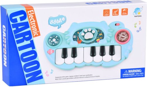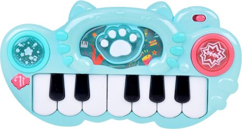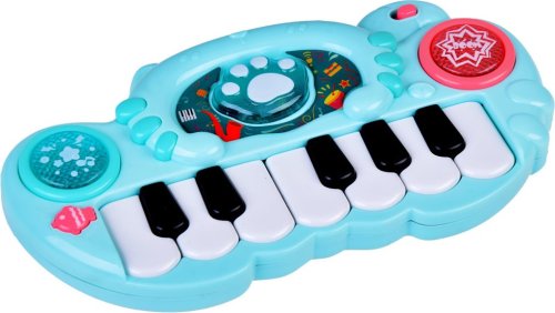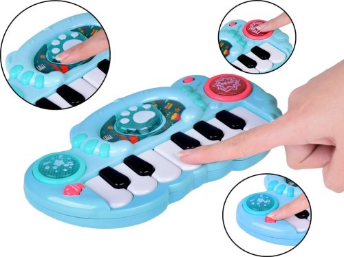 Osvetlené tlačidlá vydávajú zvuky bubnov a činelov. Ružová labka prehráva krátke veselé melódie so súčasným podsvietením okrúhlych tlačidiel. Čierne a biele klávesy hrajú základné tóny stupnice. Každé stlačenie klávesy sprevádza svetelný efekt umiestnený na paneli hračky. Hračka je vybavená prvkami, ktoré rozvíjajú manuálnu zručnosť dieťaťa, vďaka presnému stlačeniu klávesov. Rozmery organov: 22 x 12 x 3,5 cm Napájanie: 2 x 1,5 V AA batérie (nie sú súčasťou balenia)