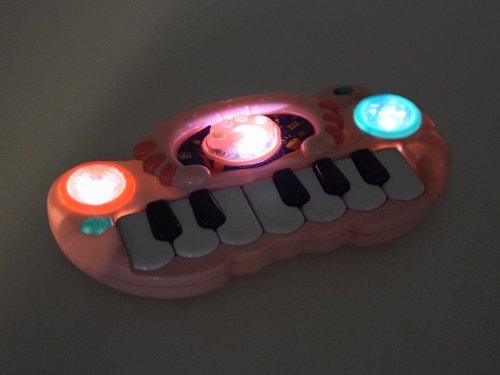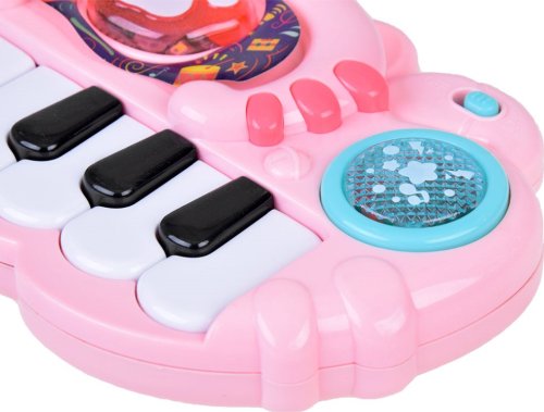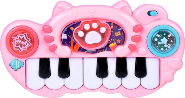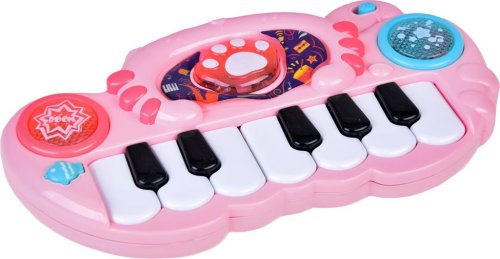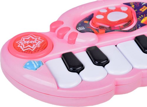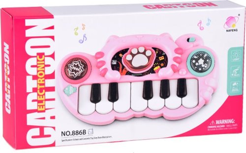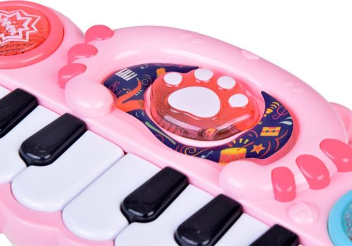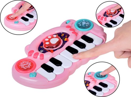 Osvetlené tlačidlá vydávajú zvuky bubnov a činelov. Ružová labka prehráva krátke veselé melódie so súčasným podsvietením okrúhlych tlačidiel. Čierne a biele klávesy hrajú základné tóny stupnice. Každé stlačenie klávesy sprevádza svetelný efekt umiestnený na paneli hračky. Hračka je vybavená prvkami, ktoré rozvíjajú manuálnu zručnosť dieťaťa, vďaka presnému stlačeniu klávesov. Rozmery organov: 22 x 12 x 3,5 cm Napájanie: 2 x 1,5 V AA batérie (nie sú súčasťou balenia)