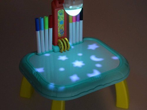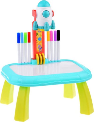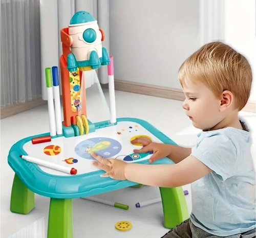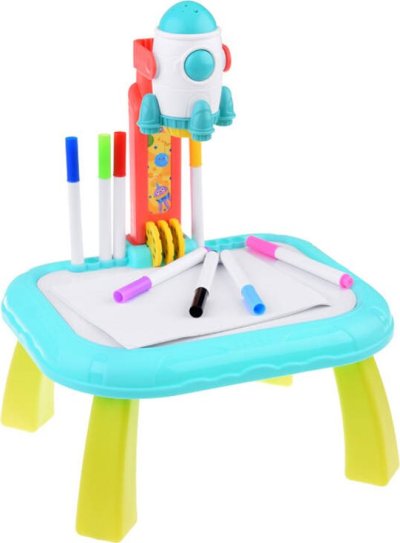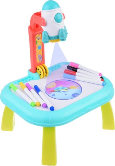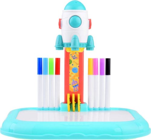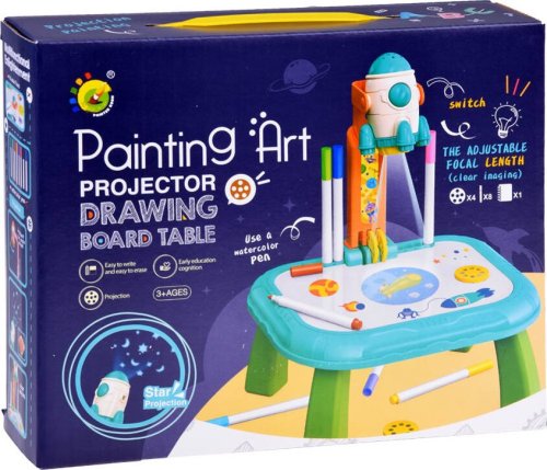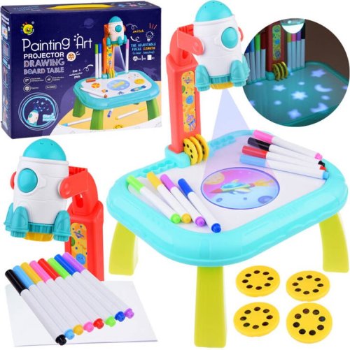 Kozmický projektor je skvelý nápad pre malých umelcov, ktorí radi kreslia. Projektor má nastaviteľný uhol náklonu, takže ho možno použiť priamo na tabuli alebo premietať obrázky na stenu. V hornej časti projektora je projektor v tvare rakety. Po zapnutí tlačidla umiestneného vpredu rakety sa rozsvieti svetlo, ktoré vám umožní premietať hviezdnu oblohu na stenu alebo strop. Po opätovnom stlačení tlačidla sa projektor zapne a môžeme zobraziť obrázky, ako sú vesmírny svet, zvieratá, vozidlá a podmorský svet. Projektor má stolnú dosku, na ktorej si dieťa môže usporiadať fixky, kresliť a kopírovať obrázky zobrazené na projektore. Tabuľa je veľmi pekne vykonaná a bude poskytovať veľa zábavy. Veľká zábava zaručená. Súprava obsahuje