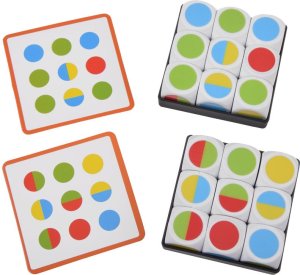 Napínavá hra pre celú rodinu, kde rozhoduje rýchlosť a pozornosť. Hráči odhaľujú karty so vzormi a snažia sa čo najrýchlejšie zložiť obrazec pomocou kociek na svojich stojančekoch. Kto prvý zazvoní a má správne zložený vzor, získava kartu. Vyhráva ten, kto ich nazbiera najviac. Výhody hry