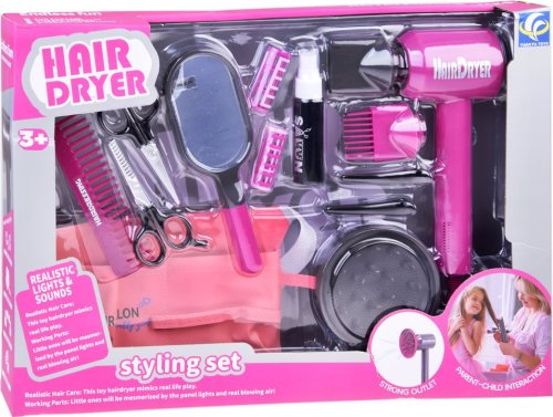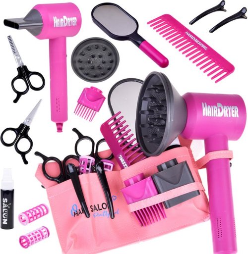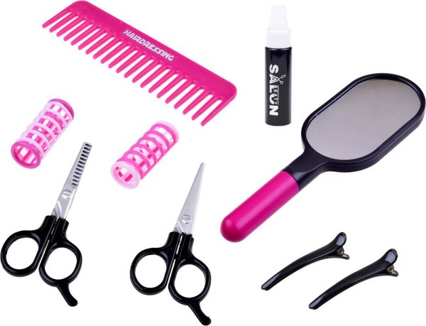 Koho malá kaderníčka tentoraz natočí na natáčky? Sada pre malú kaderníčku – skvelý set doplnkov pre každú malú slečnu, ktorá sníva o tom stať sa vlasovou štylistkou, miluje hrať sa s vlasmi a chce si otvoriť svoj vlastný mini kadernícky salón priamo vo svojej izbičke. Farebná sada umožňuje realistickú zábavu, plnú radosti a úsmevov. Zaručene skvelá zábava s mamičkou, tetou, babičkou alebo kamarátkami. Súprava obsahuje: