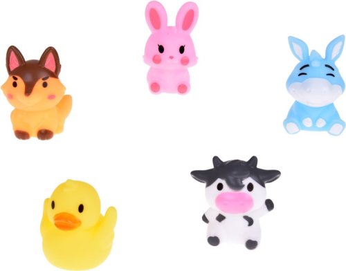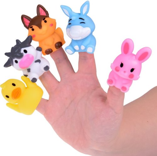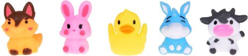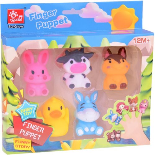 Obsah balenia: 5 gumových maňušiek na prsty – zvieratká z farmy (králik, krava, pes, kačica, somár). Rozmery každého maňuška: cca 5 × 4 × 4 cm. Hračky sú vyrobené z bezpečného a mäkkého plastu, šetrné k citlivej detskej pokožke. Sú ľahko umývateľné, odolné a zaručujú dlhodobú zábavu. Vhodné pre deti od 12 mesiacov.