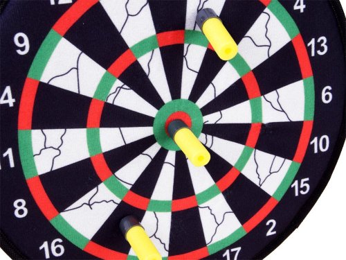 Terč na suchý zips je bezpečná zábava bez hrotov a ostrých hrán. Skvelý spôsob, ako trénovať presnosť zraku a ruky. Vynikajúca hra pre malé aj veľké deti. Terč má priemer cca 35 cm. Zavesiť ho môžete doma aj vonku. Súprava obsahuje:
