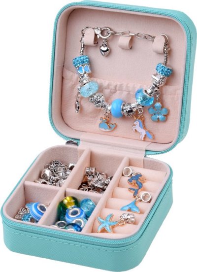 Súprava korálok v krabičke na výrobu vlastných originálnych náramkov a náhrdelníkov. Táto sada poskytne každému dievčaťu množstvo zábavných a kreatívnych chvíľ. Dievčatá, ktoré rady vyrábajú ručne, nájdu v tejto sade inšpiráciu na vytvorenie vlastnej jedinečnej bižutérie. Vlastnoručne vyrobený náramok je tým najcennejším a najkrajším šperkom. Zo sady korálikov môžete vytvoriť náramok alebo náhrdelník pre seba, svoju mamičku alebo kamarátku – a určite to bude ten najkrajší šperk. Sada je ladená do striebornej farby s modrými a zlatými prvkami. Obsah sady:
