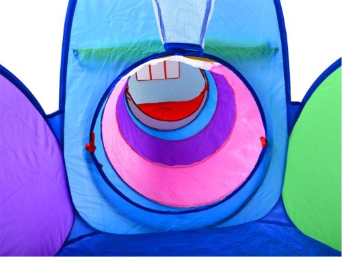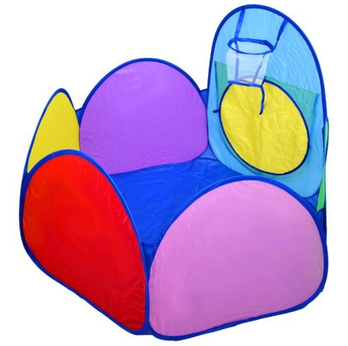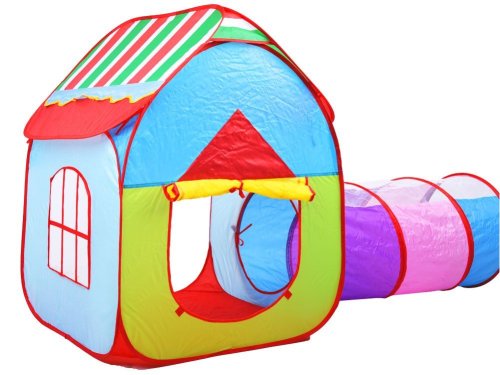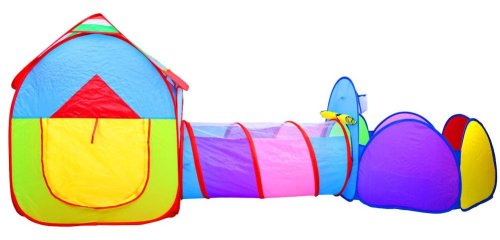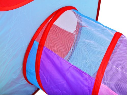 Detský set sa skladá zo stanu, bazénika a tunela. Dvere pri domčeku majú krytý vchod, aby dieťa mohlo mať chvíľku súkromia. Domček je možné prepojiť tunelom, vďaka ktorému si batoľa nacvičí trochu plazenia a dostane sa tunelom do bazénika. Súčasťou bazénika je kôš, do ktorého môžu deti strieľať loptu. Zostava je samorozkladacia a jednotlivé časti môžu stáť aj samostatne. Zostava je vhodná nielen do interiéru, ale môžete ho rozložiť aj na záhrade. Rozmery domčeka: 99 cm x 82 x 84 cm. Rozmery bazénika: 52 cm x 86 cm. Dĺžka tunela: 98 cm. Priemer tunela: 48 cm.