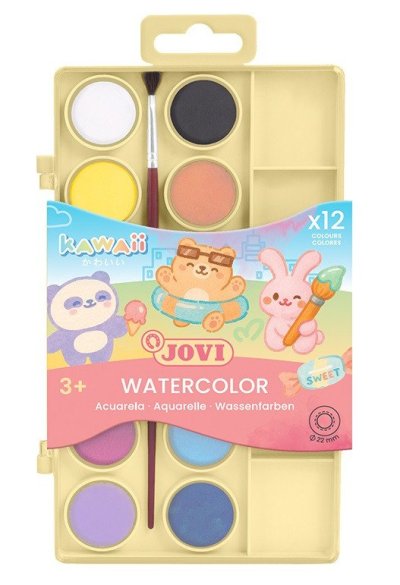 S touto paletou 12 roztomilých farieb v pastelových a žiarivých odtieňoch bude každé maľovanie čistá radosť. Vodové farby sú ideálne na porézne povrchy, kde krásne vyniknú vďaka svojej jemnej štruktúre a sýtym farbám. Farby sa ľahko miešajú, rýchlo schnú, majú vynikajúce krytie a nezanechávajú na papieri bubliny. Vďaka praktickým miešacím jamkám a priloženému štetcovi je sada pripravená na okamžité tvorenie. Sada obsahuje: 12 vodových farieb v tabletách (priemer 22 mm), 1 štetec. Výhody: mäkké, rozkošné odtiene vhodné na kreslenie kawaii motívov, ľahko sa riedia vodou, dobre kryjú a nezanechávajú stopy ani bubliny, rýchlo schnú, jednoduché a čisté použitie, perfektná voľba pre všetkých malých umelcov, ktorí chcú tvoriť ľahko a štýlovo.