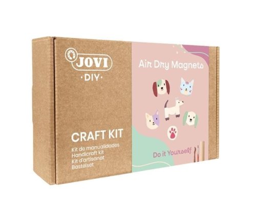 Kreatívna súprava na výrobu magnetiek zo samotvrdnúcej hmoty. Obsahuje návod krok za krokom + QR tutorial video. Balenie obsahuje: JOVI samotvrdnúca hmota 500 g, 1 ks drevený valček, 5 ks modelovacích špachtlí, 1 ks brúsny papier, 8 ks 15 ml kvasových temperových farieb, 2 ks štetcov, 1 ks zápisník /16 strán/, 9 ks magnetiek a 9 ks návod krok za krokom.