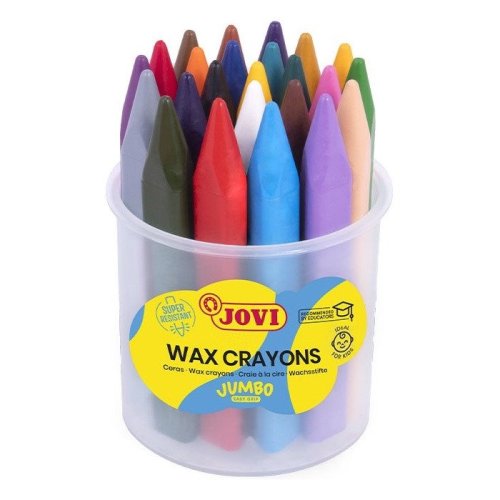 JOVI voskovky trojhranné nepúšťajú farbu, sú bez vône a nezlomia sa ani pri páde z výšky. K dispozícii sú v jasných a živých farbách a je možné s nimi kresliť na papier, kartón, drevo, textil, plast a rôzne iné povrchy. Obsahujú včelí vosk.<br>Upozornenie : Produkt obsahuje malé časti ktoré môže dieťa ľahko prehltnúť. Nevhodné pre deti do troch rokov.