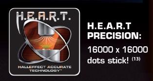 Ponúka 256 krát väčšiu úroveň presnosti, než u existujúcich systémov (16-bit! tj. dosiahnuté rozlíšenie 16.000 x 16.000 hodnôt). Magnety zaisťujú pohyb bez trenia, pre neobmedzenú presnosť a výdrž počas hry. Špirálová pružina (priemer 2,8 mm) v joysticku poskytuje pevné, lineárne a hladké napätie.