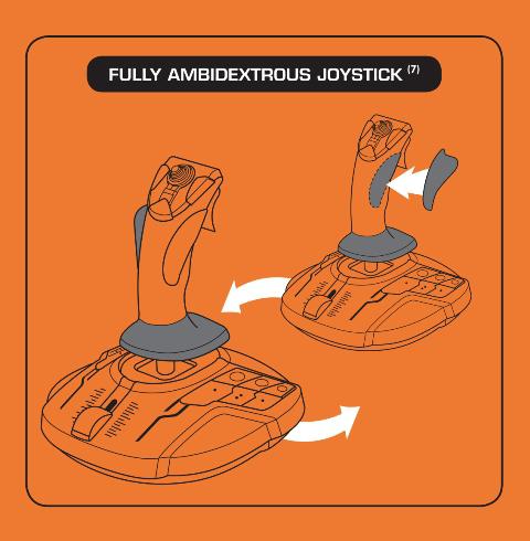 3 odnímateľné súčasti umožňujú joystick dokonale prispôsobiť pravákom aj ľavákom. Pilotovanie s joystickom v každej ruke je teraz možné vo všetkých hrách kompatibilných s dvoma joysticky.