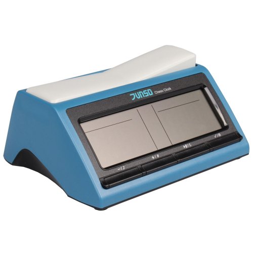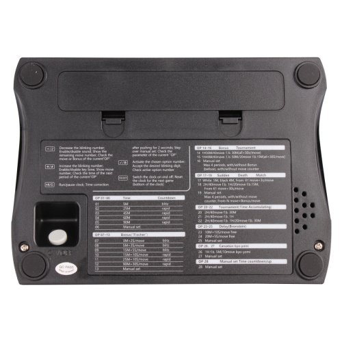 Digitálne hodiny JUNSD JS242A pre šachových hráčov všetkých úrovní - od úplných začiatočníkov až po profesionálov. Hodiny vyrobené z odolného plastu sa ľahko ovládajú a ich nastavenie je jednoduché a intuitívne. Napriek svojej malej veľkosti ponúka veľký a prehľadný LCD displej. Napájané sú dvoma batériami AA, ktoré sú súčasťou balenia. - materiál: plast - rozmery: 15 x 11 x 6 cm - hmotnosť: cca 290 g - veľký LCD displej - 28 prednastavených časových režimov - použitie japonského čipu EPSON IC - presné meranie, spoľahlivosť a odolnosť proti rušeniu - napájanie na 2x AA batériu (súčasťou balenia)