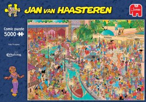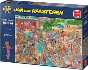 Skladanie puzzle od Jana van Haasterena je veľmi pestré a zábavné, preskúmate tak každý vtipný detail a zabavíte sa na dlhé chvíle. V súlade so svojimi tradíciami komponuje Jan van Haasteren do svojich predlôh svoju známu značku, ktorú ako prví jeho fanúšikovia hľadajú - žraločia plutva a ruky, ktoré vyzerajú, ako by nikomu nepatrili! A tiež mnoho ďalších detailov, ktoré nájdete na takmer všetkých jeho ilustráciách - zubnú protézu, Mikuláša a Haasterenov vlastný portrét. Veľmi detailné, farebné a predovšetkým vtipné ilustrácie od autora menom Jan Van Haasteren výhradne pre JUMBO. Jeho kresby majú výrazne rozoznateľný štýl - vtipné obrázky, veselé situácie a oveľa viac ľudí, než by ste očakávali! Puzzle z produkcie Jan van Haasteren sú po celom svete populárne a doteraz ich vytvoril viac ako 80. Ilustračné video Rozmer zloženého puzzle cca 156 x 107 cm
