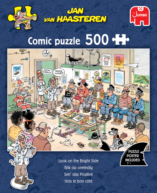 Skladanie puzzle od Jana van Haasterena je veľmi pestré a zábavné, preskúmate tak každý vtipný detail a zabavíte sa na dlhé chvíle. V súlade so svojimi tradíciami komponuje Jan van Haasteren do svojich predlôh svoju známu značku, ktorú ako prví jeho fanúšikovia hľadajú - žraločia plutva a ruky, ktoré vyzerajú, ako by nikomu nepatrili! A tiež mnoho ďalších detailov, ktoré nájdete na takmer všetkých jeho ilustráciách - zubnú protézu, Mikuláša a Haasterenov vlastný portrét. Veľmi detailné, farebné a predovšetkým vtipné ilustrácie od autora menom Jan Van Haasteren výhradne pre JUMBO. Jeho kresby majú výrazne rozoznateľný štýl - vtipné obrázky, veselé situácie a oveľa viac ľudí, než by ste očakávali! Puzzle z produkcie Jan van Haasteren sú po celom svete populárne a doteraz ich vytvoril viac ako 80. Rozmer zloženého puzzle cca 49 x 35 cm