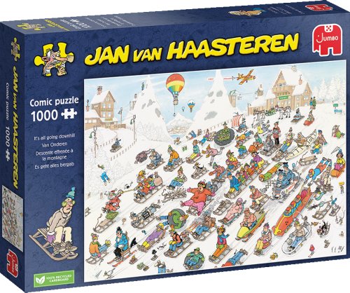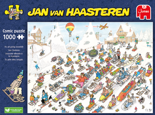 Skladanie puzzle od Jana van Haasterena je veľmi pestré a zábavné, preskúmate tak každý vtipný detail a zabavíte sa na dlhé chvíle. V súlade so svojimi tradíciami komponuje Jan van Haasteren do svojich predlôh svoju známu značku, ktorú ako prví jeho fanúšikovia hľadajú - žraločia plutva a ruky, ktoré vyzerajú, ako by nikomu nepatrili! A tiež mnoho ďalších detailov, ktoré nájdete na takmer všetkých jeho ilustráciách - zubnú protézu, Mikuláša a Haasterenov vlastný portrét. Veľmi detailné, farebné a predovšetkým vtipné ilustrácie od autora menom Jan Van Haasteren výhradne pre JUMBO. Jeho kresby majú výrazne rozoznateľný štýl - vtipné obrázky, veselé situácie a oveľa viac ľudí, než by ste očakávali! Puzzle z produkcie Jan van Haasteren sú po celom svete populárne a doteraz ich vytvoril viac ako 80. Ilustračné video Rozmer zloženého puzzle cca 68 x 49 cm