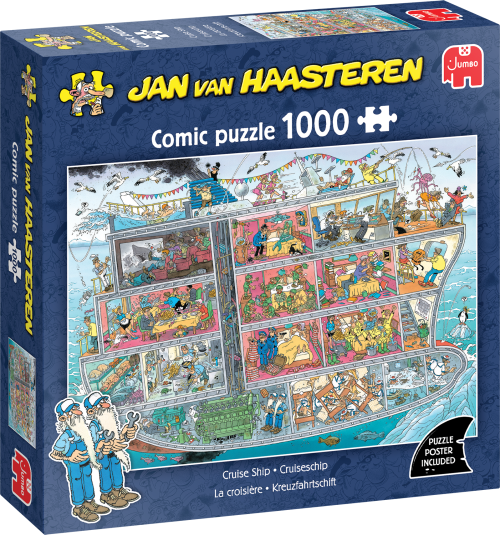 Skladanie puzzle od Jana van Haasterena je veľmi pestré a zábavné, preskúmate tak každý vtipný detail a zabavíte sa na dlhé chvíle. V súlade so svojimi tradíciami komponuje Jan van Haasteren do svojich predlôh svoju známu značku, ktorú ako prví jeho fanúšikovia hľadajú - žraločia plutva a ruky, ktoré vyzerajú, ako by nikomu nepatrili! A tiež mnoho ďalších detailov, ktoré nájdete na takmer všetkých jeho ilustráciách - zubnú protézu, Mikuláša a Haasterenov vlastný portrét. Veľmi detailné, farebné a predovšetkým vtipné ilustrácie od autora menom Jan Van Haasteren výhradne pre JUMBO. Jeho kresby majú výrazne rozoznateľný štýl - vtipné obrázky, veselé situácie a oveľa viac ľudí, než by ste očakávali! Puzzle z produkcie Jan van Haasteren sú po celom svete populárne a doteraz ich vytvoril viac ako 80. Ilustračné video Rozmer zloženého puzzle cca 68 x 49 cm