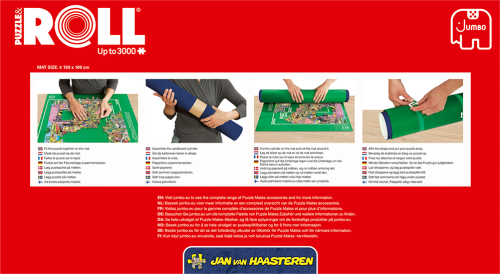 Praktický doplnok na skladanie puzzle - to je rolovací koberček JUMBO. Podložka je vhodná pre puzzle do veľkosti 140 x 95 cm (zodpovedá 3.000 dielikom väčšiny výrobcov). Koberček na puzzle je ideálny na úsporu miesta a bezpečné uchovanie nedokončeného aj hotového obrázku. Podložka zaistí bezpečné uchovanie alebo transport vášho puzzle. Na podložke sú vyznačené rozmery puzzle JUMBO, môžete teda už na začiatku skladania presne založiť okraje. Zelenú podložku pod puzzle jednoducho zrolujete aj s rozoskladaným obrázkom, máte rýchlo upratané a navyše nemusíte mať obavu, že sa Vám dieliky niekde postrácajú. Koberček pod puzzle je ideálny na úsporu miesta aj na cestovanie. Skladá sa z troch pevných tubusov, ktoré spojíte k sebe, podložky a troch gumových pásikov na pevné uchytenie. Veľkosť koberčeka je 150 x 100 cm. UPOZORNENIE: V prípade zakúpenia koberčeka na skladanie puzzle iných značiek odporúčame overiť rozmery zloženého puzzle. Údržba filcovej podložky: Podložku je možné žehliť na najnižšiu teplotu najlepšie cez tenkú tkaninu (utierku). Ručné pranie v studenej vode, nežmýkať a nesušiť v sušičke.