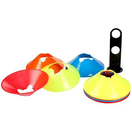 Vytyčovacie viacúčelové méty Jumbo s priemerom 19,5 cm a výškou 5 cm sú vyrobené z mäkčeného plastu a sú tak odolné proti prešliapnutiu alebo inej deformácii. Vďaka rôznym farbám je možné z mét vytvoriť pestrú a nápaditú dráhu. Do výrezov na vrchole je možné vložiť tyčky s priemerom 25 mm a postaviť tak na dráhe aj prekážky. Sada obsahuje 16 mét rovnomerne rozdelených do 4 farieb a plastový stojan pre ich ľahké prenášanie.