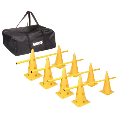 Agility set Merco Jump 4HS38 je praktická pomôcka pre vaše tréningy v telocvični alebo vonku. Agility prekážky sa hodí pre športovcov všetkých športových odvetví, kluby a š koly. Vďaka agility sade si zlepšujete svoju kondíciu, efektívne trénujete rýchlosť a koordináciu dolných aj horných končatín. Súprava pre základný tréning Merco Jump 4HS38 obsahuje osem kužeľov s otvormi a výškou 38 cm a štyri dvojdielne skladacie tyče, ktoré majú po zložení celkovú dĺžku 1 ma priemer 25 mm. Súčasťou sady je aj praktický vak z polyesteru s popruhmi do ruky pre ľahké prenášanie a uskladnenie medzi jednotlivými tréningami. Jump 4HS38: - 8x kužeľ s otvormi 38 cm - 4x dvojdielna skladacia tyč - polypropylén, polyester - hmotnosť sady: 2,4 kg - súčasťou praktická taška