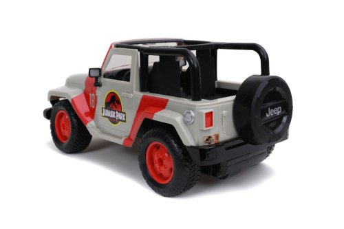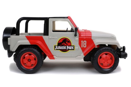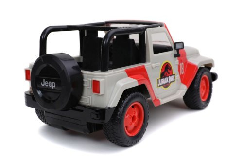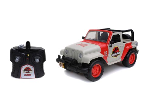 Auto Jurassic World Jeep Wrangler na diaľkové ovládanie. 2 kanály (jazdia vpred, vzad, vľavo a vpravo). Funkcia turbo. Frekvencia 2,4 GHz. Dosahuje rýchlosť až 9 km/h. Dĺžka 30 cm. Farba červená a béžová. V mierke 1:16.