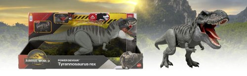 Tento Tyrannosaurus rex inspirovaný filmem přináší ultimátní bojovou akci s nepřetržitým kousáním, světly a děsivým řevem. Stisknutím jazyka jednou T-Rex zařve, ale pokud jazyk podržíte prstem nebo figurkou jiného dinosaura, spustí se divoké sekvence kousání, zvuků a světelných efektů. Pohybem ocasu aktivujete útok z různých směrů! Tento 53 cm dlouhý masožravec potěší všechny malé milovníky dinosaurů od 4 let. Naskenujte kód na noze v aplikaci Jurassic World Play a přidejte si T-Rexe do své digitální sbírky!