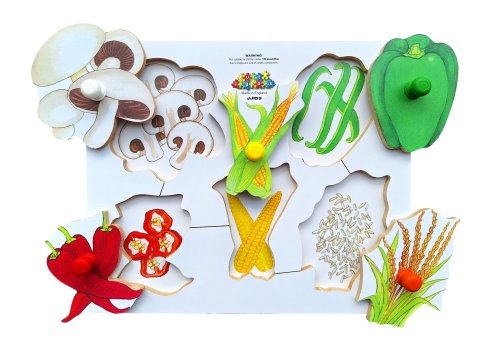 Just Jigsaws 153 Lúpeme a krájame plodiny 4 - drevené doskové puzzle 6 dielov predstavuje drevenú skladačku s štipcami pre ľahký úchop, ktorá deťom krásne znázorňuje, ako vyzerá zelenina, huby, kukurica a ryža aj pod svojou šupkou. Cieľom tejto skladačky je, aby deti správne priradili zeleninu, huby, kukuricu a ryžu k ich nakrájanému alebo vylúpanému variantu. S týmto náučným puzzle si deti osvojujú názvy rôznych druhov plodín, ich farby a tvary. Samotná hra zároveň pozitívne ovplyvňuje rozvoj logického myslenia a formovania priestorovej predstavivosti, čo z tejto na prvý pohľad obyčajnej skladačky robí veľmi zaujímavú a edukatívnu hru. Sada obsahuje: šampiňóny, papriku sladkú, chilli papričky, kukuricu a ryžu.