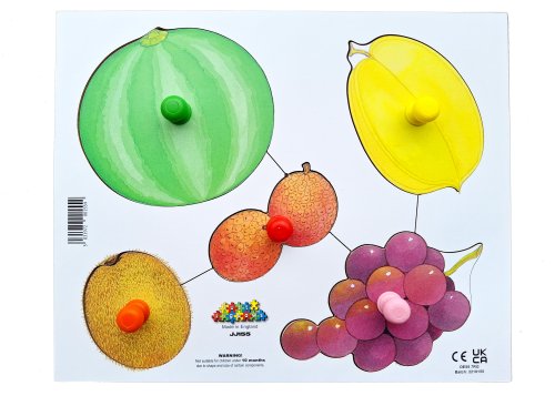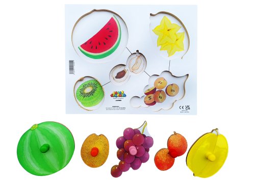 Just Jigsaws 155 Lúpeme a krájame plodiny 6 - drevené doskové puzzle 6 dielov predstavuje drevenú skladačku s štipcami pre ľahký úchop, ktorá deťom krásne znázorňuje, ako vyzerá exotické ovocie aj pod svojou šupkou. Cieľom tejto skladačky je, aby deti správne priradili ovocie k jeho nakrájanému variantu. S týmto náučným puzzle si deti osvojujú názvy rôznych druhov exotického ovocia, ich farby a tvary. Samotná hra zároveň pozitívne ovplyvňuje rozvoj logického myslenia a formovania priestorovej predstavivosti, čo z tejto na prvý pohľad obyčajnej skladačky robí veľmi zaujímavú a edukatívnu hru. Sada obsahuje: hrozno, kivi, melón, karambolu a liči.