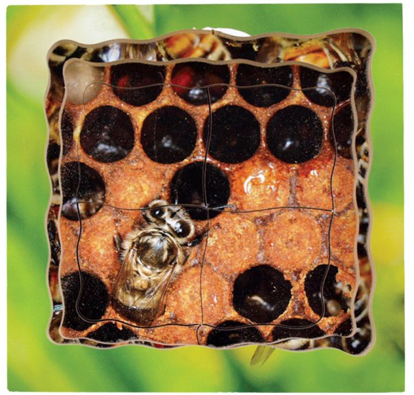 Just Jigsaws 600 Včela a jej životný cyklus - drevené vrstvené puzzle 19 dielov. Objavujte s týmto netradičným puzzle životný cyklus včely. Edukatívne puzzle, vďaka ktorému môžu deti skúmať zázračné premeny prírody prostredníctvom skutočných fotografií. Vrstvené puzzle obsahuje obrázky 4 fáz vývojového cyklu. K videniu sú reálne fotky: čiastočne zavíčkovaných lariev po kŕmení pred zakuklením, zaviečkovaných kukiel v počiatku liahnutia, konečnej fázy liahnutia a dospelé včely. Sada obsahuje celkom 18 kusov puzzle dielikov a 1 základňu s rámčekom.