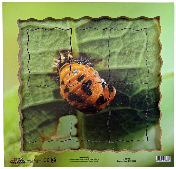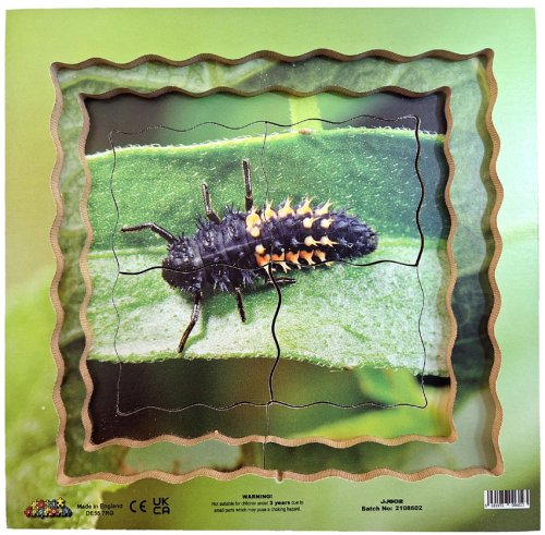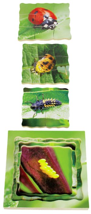 Just Jigsaws 602 Lienka a jej životný cyklus - drevené vrstvené puzzle 19 dielov. Objavujte s týmto netradičným puzzle životný cyklus lienky. Edukatívne puzzle, vďaka ktorému môžu deti skúmať zázračné premeny prírody prostredníctvom skutočných fotografií. Vrstvené puzzle obsahuje obrázky 4 fáz vývojového cyklu. K videniu sú reálne fotky: vajíčok, larvy, kukly a dospelého slunéčka sedembodkového. Sada obsahuje celkom 18 kusov puzzle dielikov a 1 základňu s rámčekom.