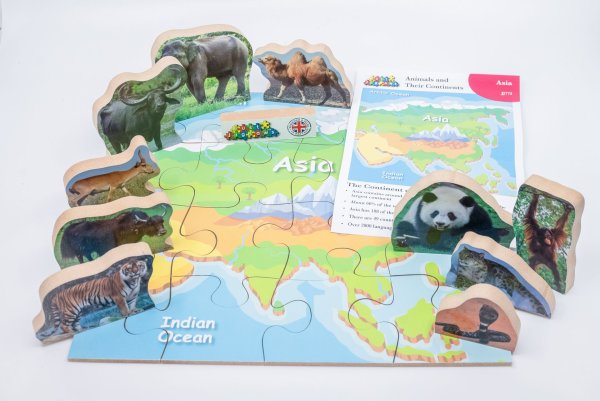 Just Jigsaws 773 Ázia a jej zvieratá - drevené puzzle 16 dielov a 10 zvierat je vzdelávacia sada, ktorej zmyslom je zoznámiť deti s jednotlivými kontinentmi a ich faunou. Cieľom je správne poskladať mapu daného svetadielu a pomenovať všetky zvieratá, ktoré na ňom žijú. 10 reálne vyobrazených, voľne stojacich zvierat na MDF doske o hrúbke 1,5 cm, 1 mapu kontinentu na MDF doske s hrúbkou 0,4 cm rozrezanú na 16 kusov a informačný list s jednoduchými vysvetľujúcimi informáciami o danom svetadiele a niektorých jeho zvieratách Toto edukatívne puzzle je skvelou voľbou pre všetkých, ktorí majú radi prírodu. a zároveň deti chcú hravým spôsobom pripraviť na budúce hodiny zemepisu.