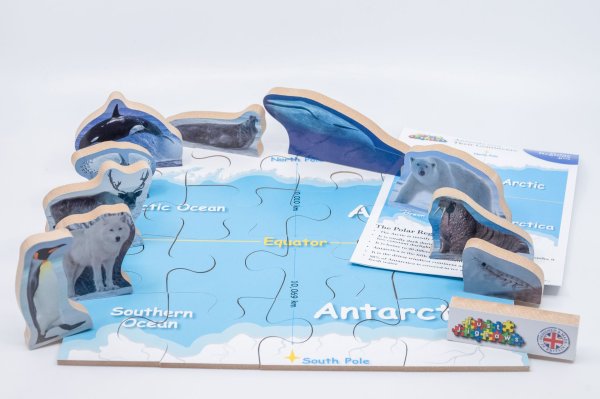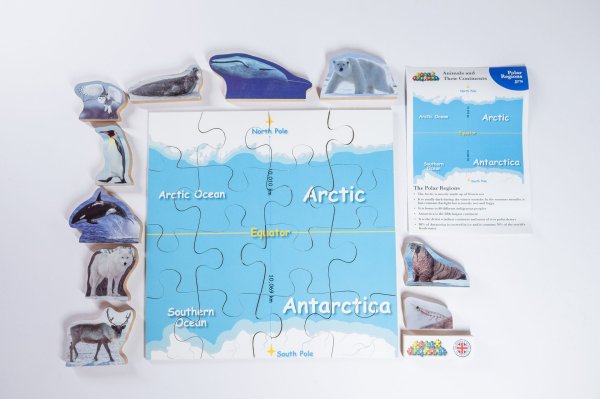 Just Jigsaws 776 Polárne oblasti a jej zvieratá - drevené puzzle 16 dielov 10 zvierat je vzdelávacia sada, ktorej zmyslom je zoznámiť deti s jednotlivými kontinentmi a ich faunou. Cieľom je správne poskladať mapu daného svetadielu a pomenovať všetky zvieratá, ktoré na ňom žijú. Sada obsahuje 10 reálne vyobrazených, voľne stojacich zvierat na MDF doske s hrúbkou 1,5 cm, 1 mapu kontinentu na MDF doske s hrúbkou 0,4 cm rozrezanú na 16 kusov a informačný list s jednoduchými vysvetľujúcimi informáciami o danom kontinente a niektorých jeho zvieratách. Toto edukatívne puzzle je skvelou voľbou pre všetkých, ktorí majú radi prírodu a zároveň deti chcú hravým spôsobom pripraviť na budúce hodiny zemepisu.