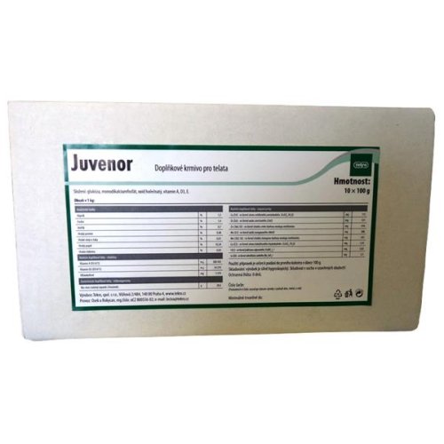 100 g Juvenora pre novonarodené teľa do pol litra prvého kolostra, v čase do 2 hodín po pôrode. Podľa potreby opakovať 1 x denne aj v ďalších dňoch po narodení.