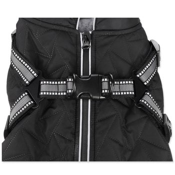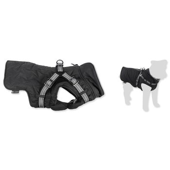 Zimná bunda Duker je ideálnou voľbou pre psov zvyknutých na postroj. Vonkajší nastaviteľný postroj je opatrený dvoma krúžkami na pripnutie vodidla a reflexnými prúžkami pre lepšiu bezpečnosť za zníženej viditeľnosti. Bunda má vrchnú prešívanú vrstvu z vodeodolného materiálu a príjemnú flísovú podšívku, ktorá udrží psa v teple a pohodlí. Vesta sa ľahko zapína pomocou zipsu a postroj pomocou trojzubcovej spony na chrbte. Pružné krytie brucha a stojačik zamedzujú úniku tepla. Hlavné prednosti: