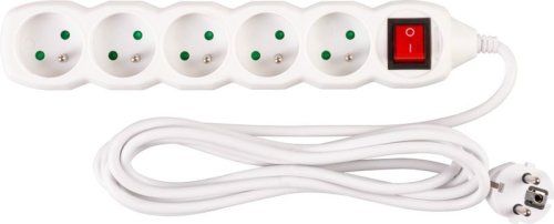 Predlžovací kábel s 5 zásuvkami a vypínačom ON/OFF, dĺžka kábla 3m, zásuvky s detskou poistkou, max. 3680W/16A. EAN 8585023383085