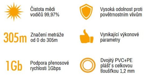 Inštalačný kábel s označením SXKD-5E-FTP-PVC+PE je vonkajší tienený kábel CAT5E s dvojitým plášťom , u ktorého je vnútorný plášť vyrobený z PVC a vonkajší plášť z vysoko odolného a UV stabilného PE materiálu. Kábel je určený pre náročnejšie inštalácie, kde dvojitý PVC+PE plášť, s celkovou hrúbkou 1,2 mm, poskytuje vysokú ochranu proti vplyvom okolitého prostredia.