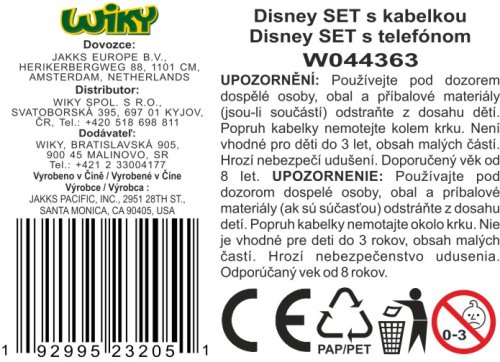 Disney Set s kabelkou. Obsahuje kabelku, bezdrôtové slúchadlá, klubovú kartu, poukaz, 4 prstienky, 2 sponky, 8 mincí. Viac variantov.
