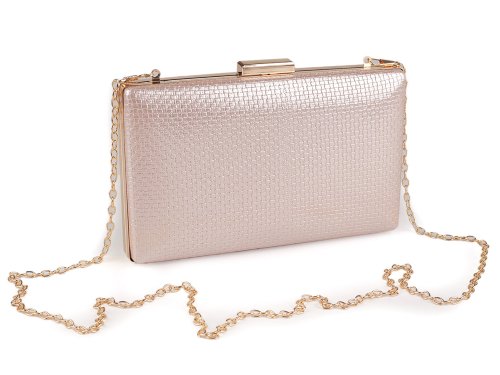 Malá spoločenská kabelka vyžaruje eleganciu a luxus, má metalický lesk. Povrch má zaujímavú kockovú štruktúru. Zdobí ju výrazné lesklé zapínanie a rámček po celom obvode. Kabelka je pevne vystužená, jej súčasťou je dlhá odnímateľná retiazka na karabíny. Môžete ju nosiť v ruke alebo ako crossbody cez rameno alebo do kríža.