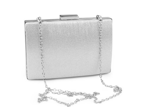 Malá spoločenská kabelka pôsobí luxusne. Jej jemne štruktúrovaný povrch sa jemne trblieta. Zdobí ju výrazné lesklé zapínanie a rámček po celom obvode vo farbe kabelky. Kabelka je pevne vystužená, jej súčasťou je dlhá odnímateľná retiazka na karabíny. Môžete ju nosiť v ruke alebo ako crossbody cez rameno alebo do kríža. Kabelka č.3 (off white) má jemný dúhový AB efekt