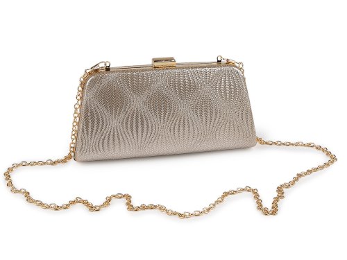 Malá spoločenská kabelka vyžaruje eleganciu a luxus, má zaujímavú lesklú povrchovú štruktúru, efektne sa trblieta. Zdobí ju výrazné lesklé zapínanie a rámček po celom obvode. Kabelka je pevne vystužená, jej súčasťou je dlhá odnímateľná retiazka na karabíny. Môžete ju nosiť v ruke alebo ako crossbody cez rameno alebo do kríža.