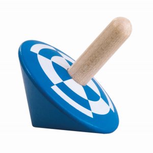 Drevená točiaca káča v modrej farbe pomáha rozvíjať jemnú motoriku prstov.