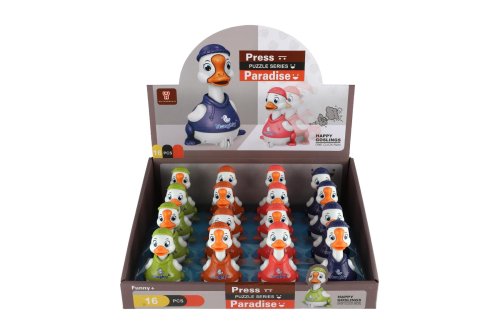 Káčer jazdiaci je na zotrvačník. Stlač hlavu a môže ísť. Rozmery výrobku 7 x 9 x 5 cm. Vhodné pre deti od 3 rokov.