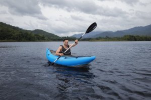 Kajak Hydro Force Cove Champion X1 je ideálnou voľbou pre pohodové vodné dobrodružstvo na jazere, rieke i mori. Tento jednomiestny nafukovací kajak sa ľahko a rýchlo pripraví na použitie. Tri vzduchové komory zvyšujú bezpečnosť a stabilitu, zatiaľ čo premyslený tvar a uzavretý kokpit minimalizuje prenikanie vody dovnútra a zlepšuje celkový zážitok z jazdy. Odolný materiál Inflata-Shield™ zaisťuje vyššiu pevnosť, obmedzuje nadmerné rozťahovanie a zvyšuje odolnosť proti poškodeniu. Komfortný kokpit je vybavený nastaviteľným nafukovacím sedadlom s opierkou chrbta pre pohodlnú jazdu. Praktický úložný priestor so sieťkou poskytuje dostatok miesta na drobnosti a vybavenie. Certifikácia GS od TÜV SÜD potvrdzuje splnenie vysokých bezpečnostných štandardov pre bezstarostnú zábavu na vode. Nechýbajú ani odnímateľné plutvy pre lepšiu smerovú stabilitu, madlá pre ľahké prenášanie a ventily pre rýchle nafúknutie aj vyfúknutie. Súčasťou balenia je 230 cm hliníkové pádlo, ručná pumpa Air Hammer ™, transportná taška a opravná sada - všetko, čo potrebujete pre okamžité vyplávanie. Pre 1 osobu. Maximálna nosnosť 120 kg. Rozmery v nafúknutom stave: 45 x 81 x 275 cm. Rozmery vo vyfúknutom stave: 102 x 275 cm. Rozmery balenia: 58 x 39 x 21 cm.