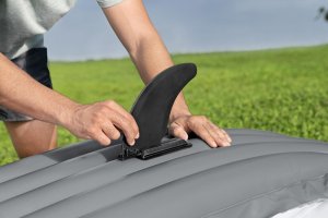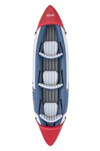Bestway® Kajak set Hydro Force® Rapid™ X3 je ideálnou voľbou pre vodné dobrodružstvo. Vďaka rozmerom 44 x 100 x 381 cm ponúka dostatok priestoru pre 3 dospelé osoby a maximálnu nosnosť 280 kg. Odolný materiál Inflata-Shield™ zaisťuje dlhú životnosť a vyššiu odolnosť proti poškodeniu. Tri vzduchové komory zvyšujú bezpečnosť a stabilitu, zatiaľ čo premyslený tvar minimalizuje prenikanie vody dovnútra a zlepšuje celkový zážitok z jazdy. Certifikácia GS od TÜV SÜD potvrdzuje splnenie vysokých bezpečnostných štandardov pre bezstarostnú zábavu na vode. Nechýbajú ani odnímateľné plutvy pre lepšiu smerovú stabilitu, madlá pre ľahké prenášanie a ventily pre rýchle nafúknutie aj vyfúknutie. Súčasťou balenia sú 2 hliníkové pádla 230 cm, ručná pumpa Air Hammer ™, transportná taška a opravná sada - všetko, čo potrebujete pre okamžité vyplávanie. Rozmery v nafúknutom stave: 44 x 100 x 381 cm. Rozmery vo vyfúknutom stave: 100 x 385 cm. Rozmery balenia: 58 x 46 x 30,5 cm.