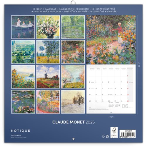 Urobte zo svojho bytu umeleckú galériu vďaka nášmu kalendáru. Poznámkový kalendár s reprodukciami najznámejších obrazov impresionistického maliara Clauda Moneta dopĺňa šesťjazyčné kalendárium s priestorom pre vaše plány a poznámky.